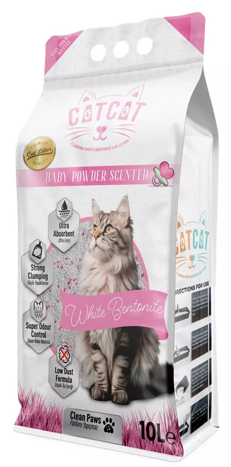 Catcat Bebek Pudrası Kokulu Kedi Kumu, doğal beyaz bentonitin üstün emici özelliklerini, bebek pudrasının yumuşak ve temiz kokusuyla birleştirerek hem kedinizin hem de sizin konforunuzu artırır. Gün boyu süren ferah ve sade bir koku, ev ortamında rahatsızlık yaratmadan temizlik hissini ön plana çıkarır.